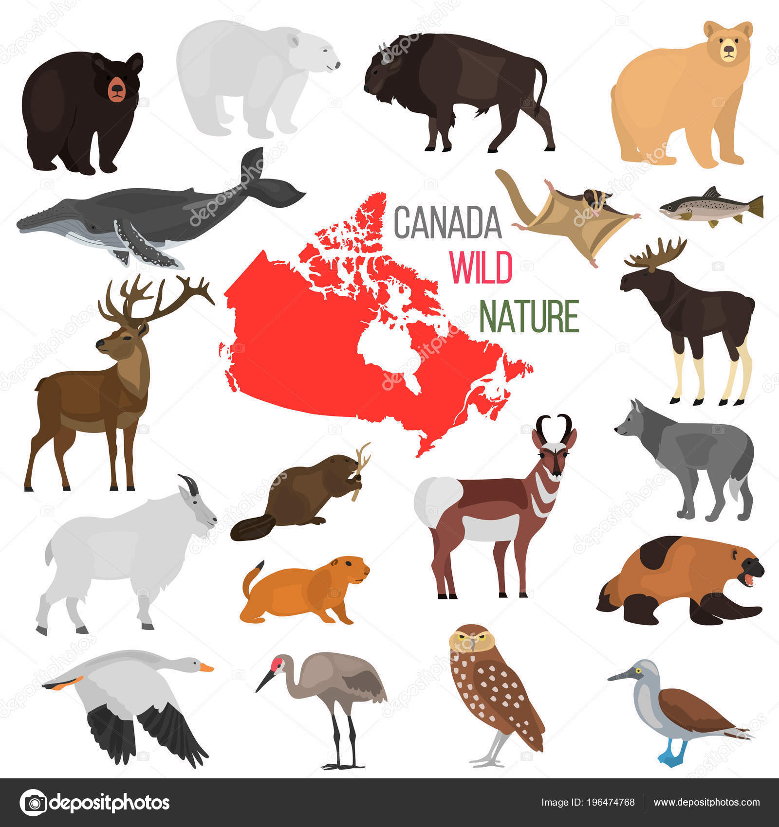Wild Animals Canada Color Flat Icons Set Stock Vector Image By C Lynxvector 196474768