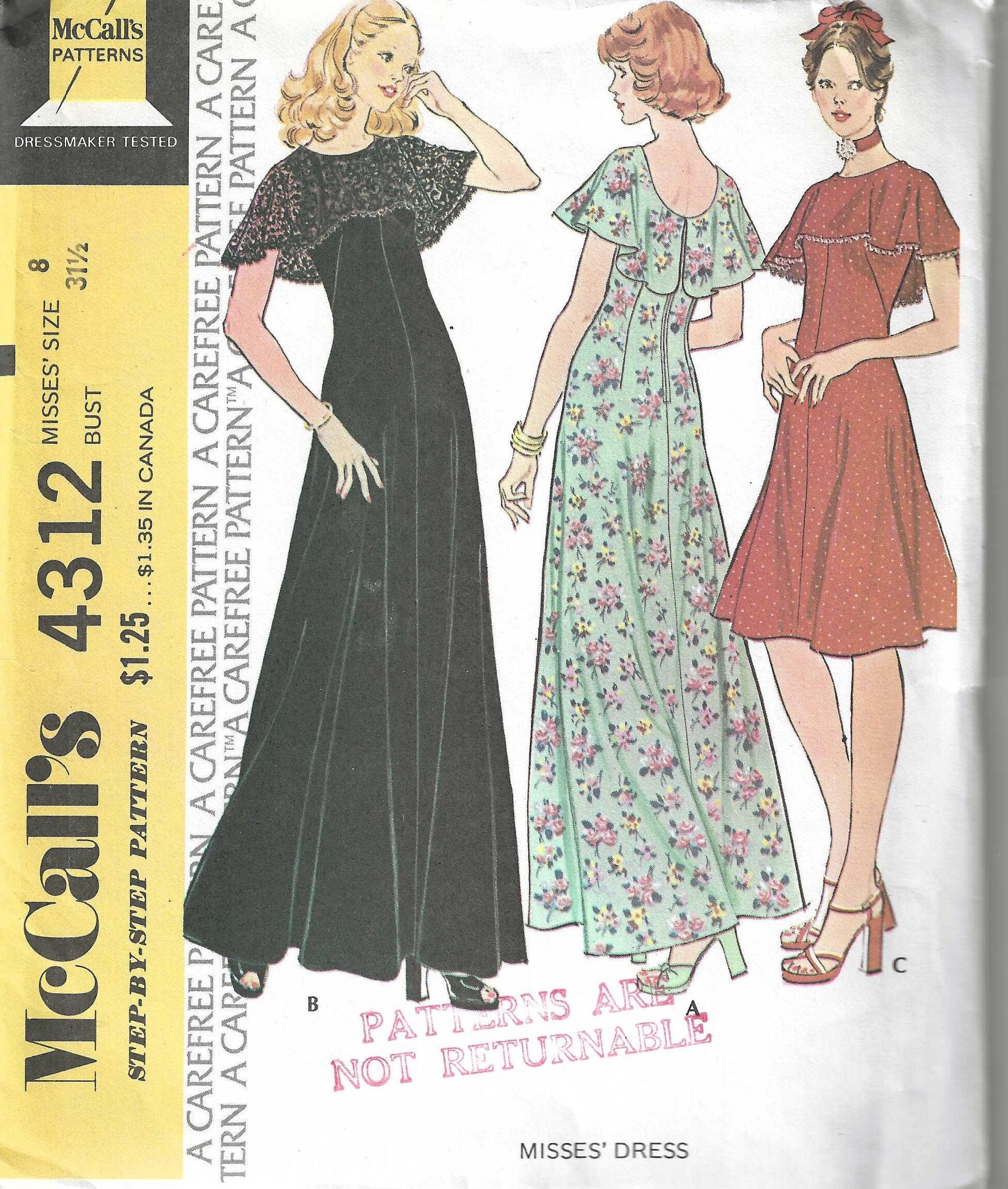 1974 Mccall S Sewing Pattern 4312 Party Or Evening Etsy