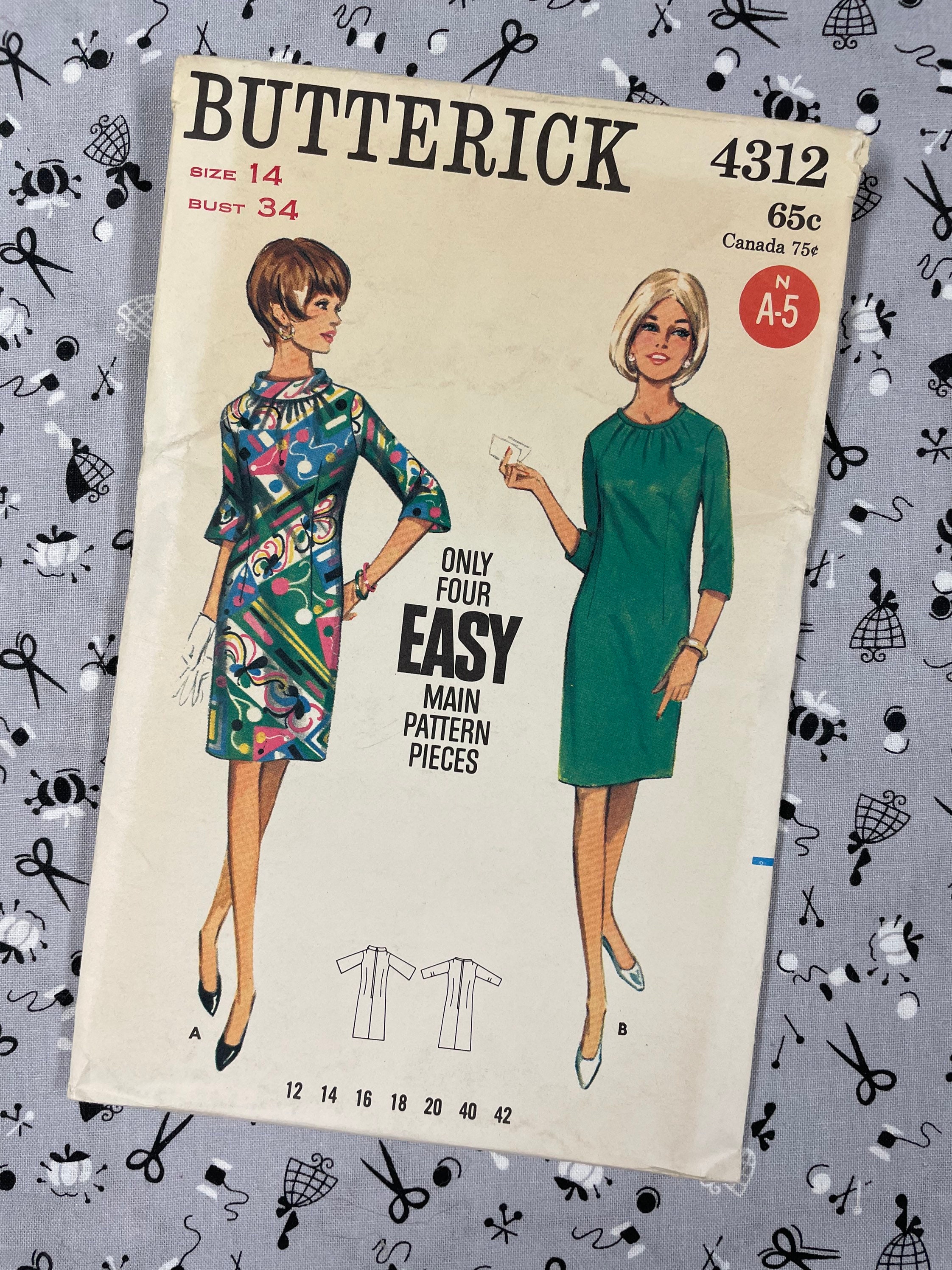 Vintage Dress Sewing Pattern Butterick 4312 Etsy